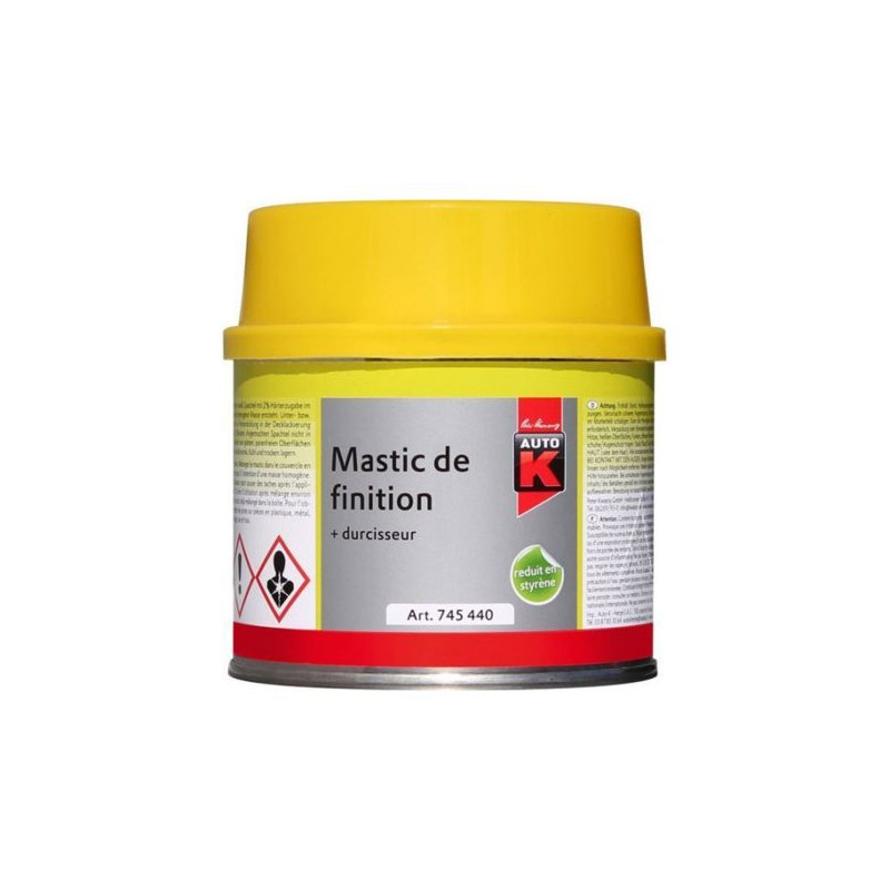 Mélanger le mastic et ajouter 2% de durcisseur dans le couvercle en plastique, jusqu’à formation d’une masse homogène.