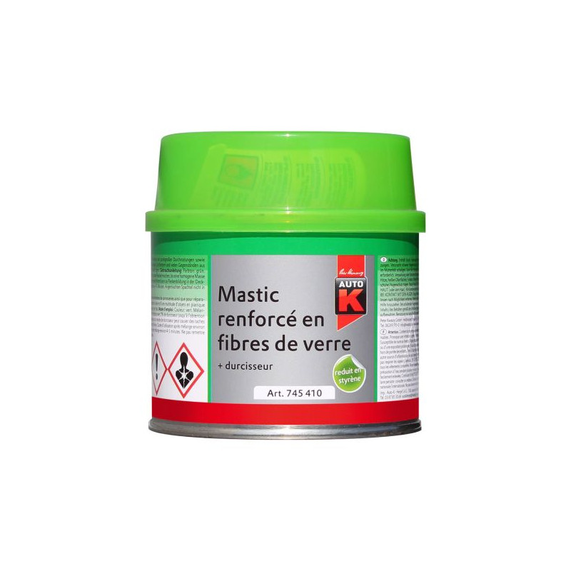 Masse de mastic durcissant rapidement sur la base de résine polyester élastique avec des petits morceaux de fibres de verre