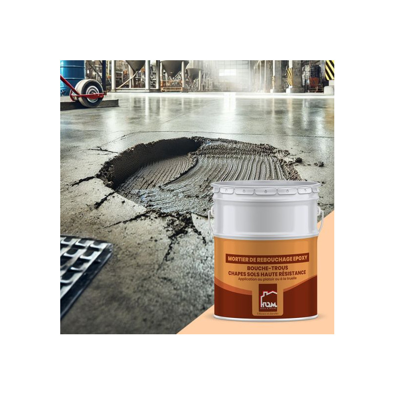 Mortier résine époxy, idéal pour le bouchage des trous présents dans des chapes de sols avec des contraintes de résistance fortes.