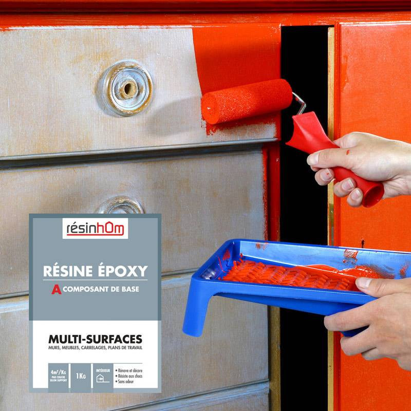 La Résine Epoxy Multi-surfaces Resinhom est une résine bi-composant à l'eau , d’aspect brillant permettant de rénover et décorer en couleur les murs intérieurs et de nombreuses surfaces telles que meubles, plans de travail, carrelage...